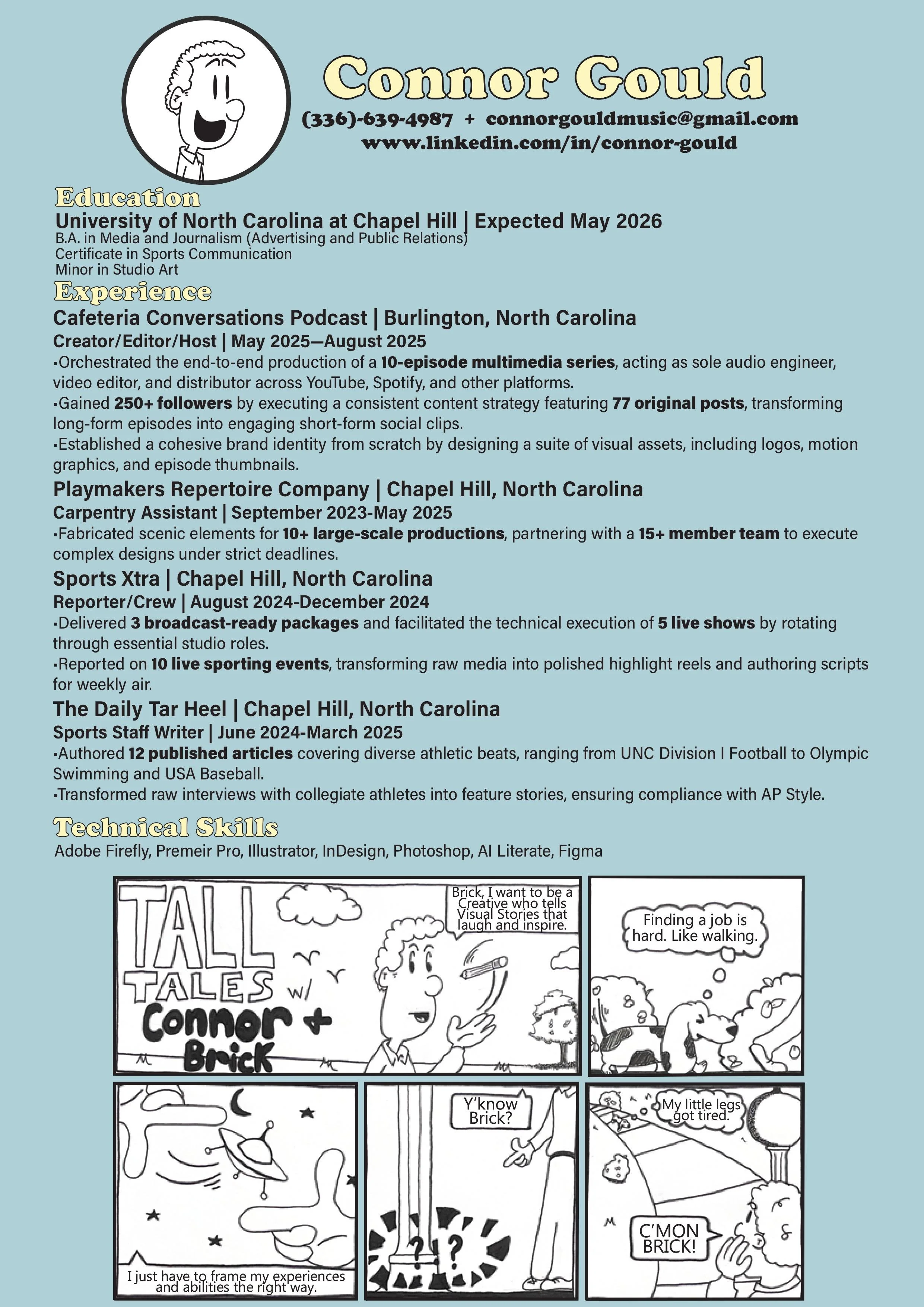 Now in pursuit of the Big Apple, Connors ambition to learn hasn’t dwendled. He is looking forward to telling stories and helping organizations tell their stories.